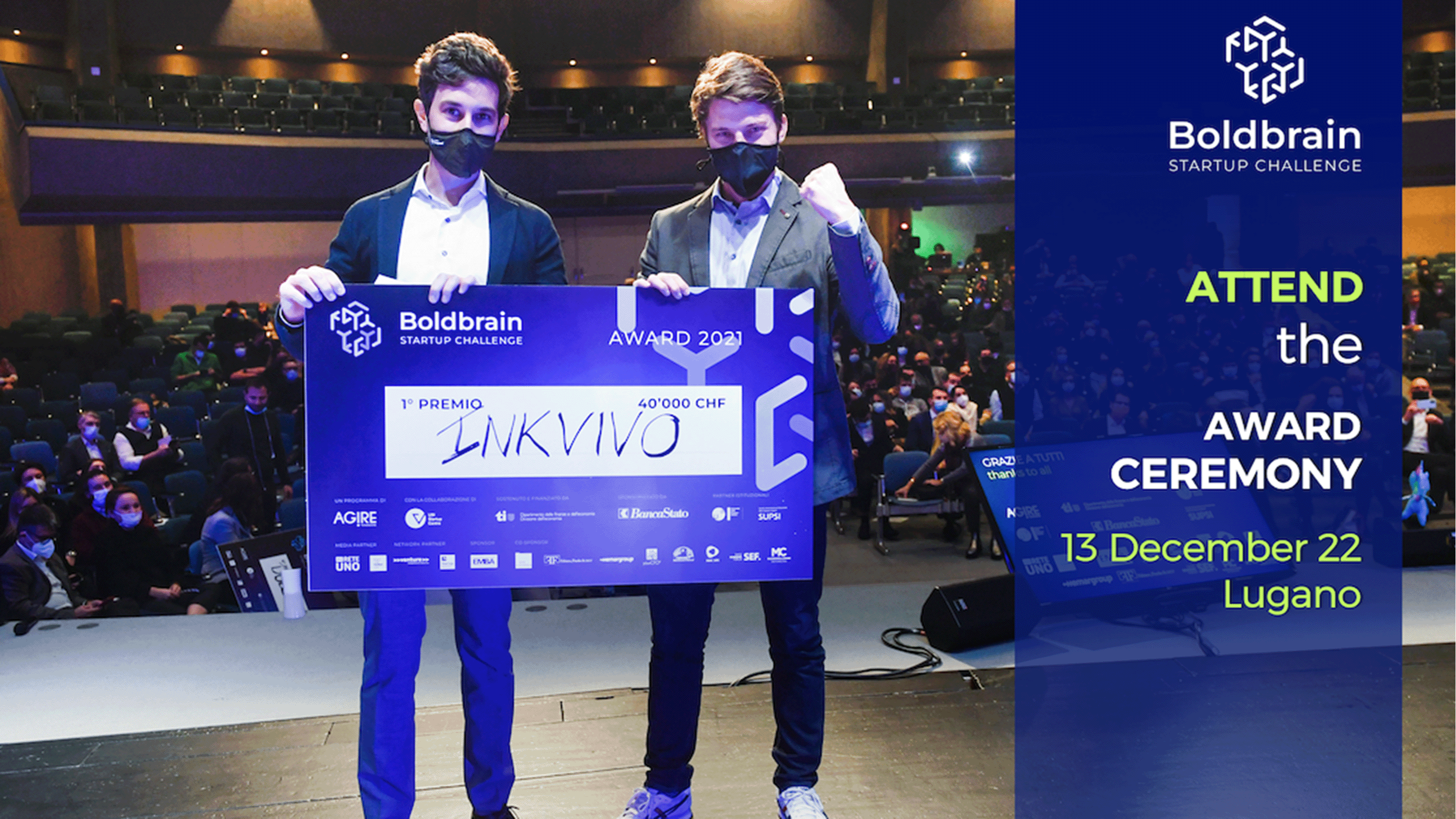 On Tuesday, 13 December, starting at 6:30 pm, the Palazzo dei Congressi in Lugano will host the Award Ceremony of the Boldbrain Startup Challenge 2022.