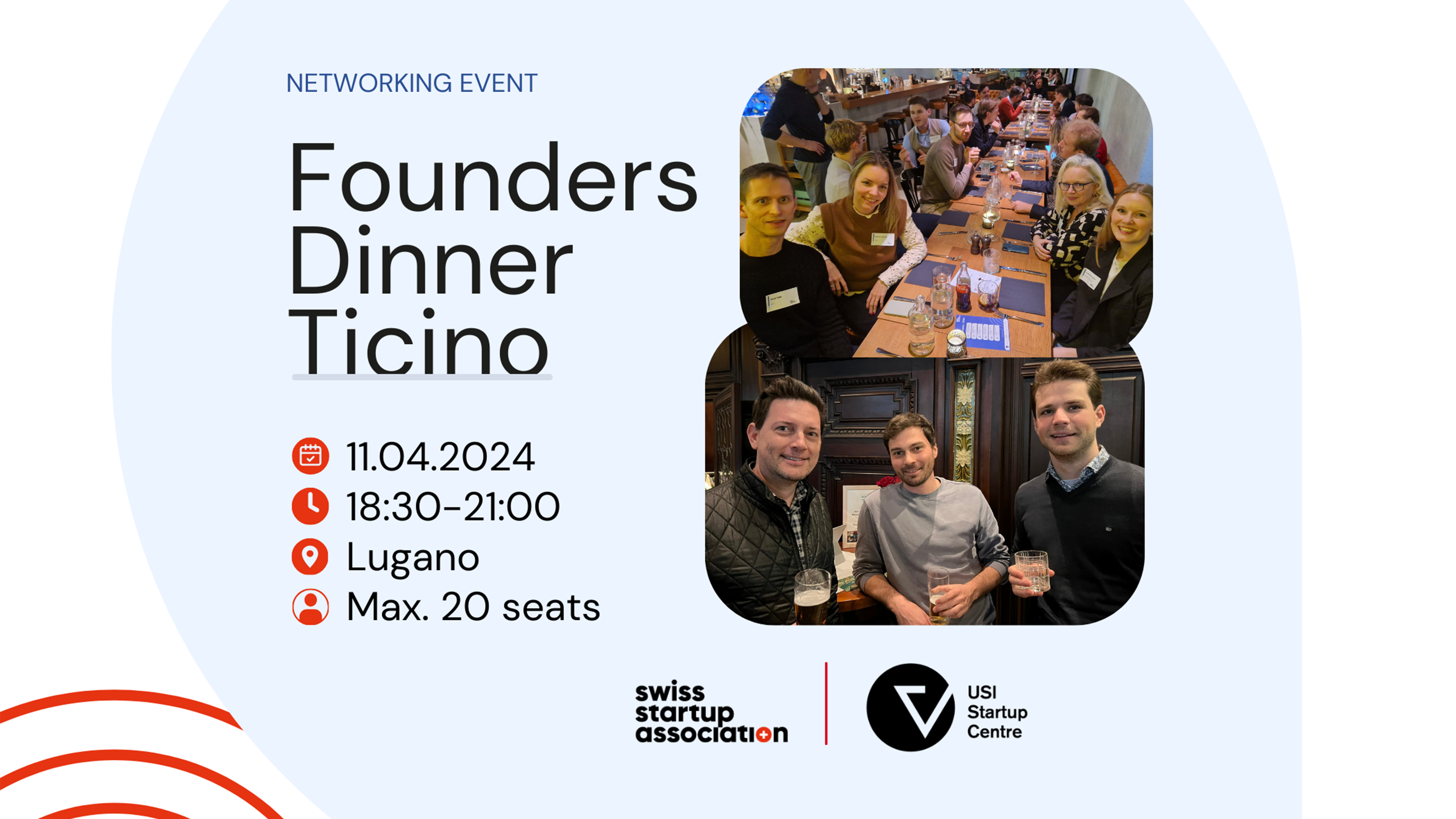 This networking event is organised by the Swiss Startup Association in partnership with the USI Startup Centre and represents a unique opportunity to connect with fellow startup founders, explore potential collaborations and enjoy a nice evening in the welcoming setting of Fresco Restaurant.