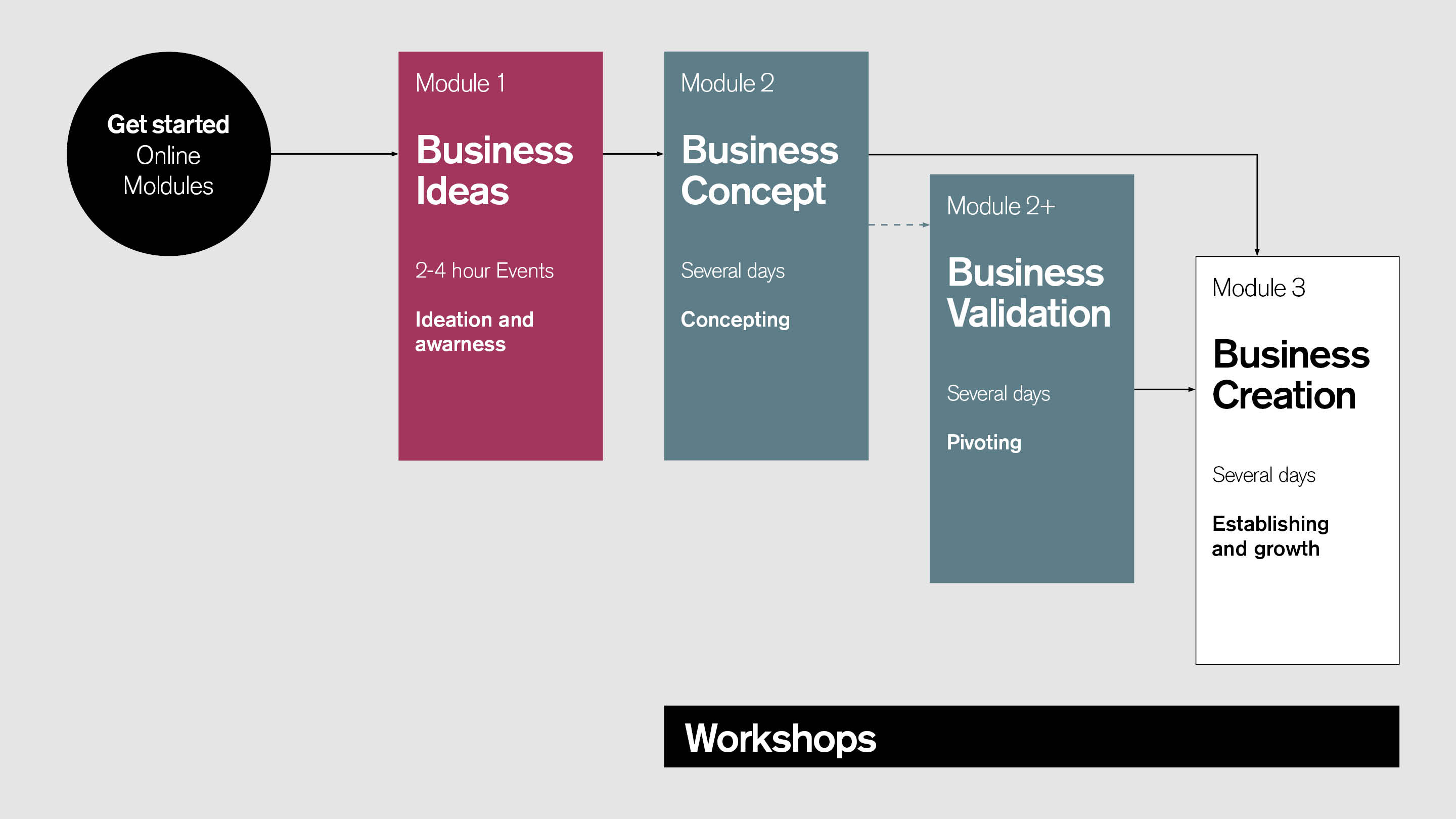 • Module 2+ - Business Validation: learn how to pivot your idea and build resilience.
