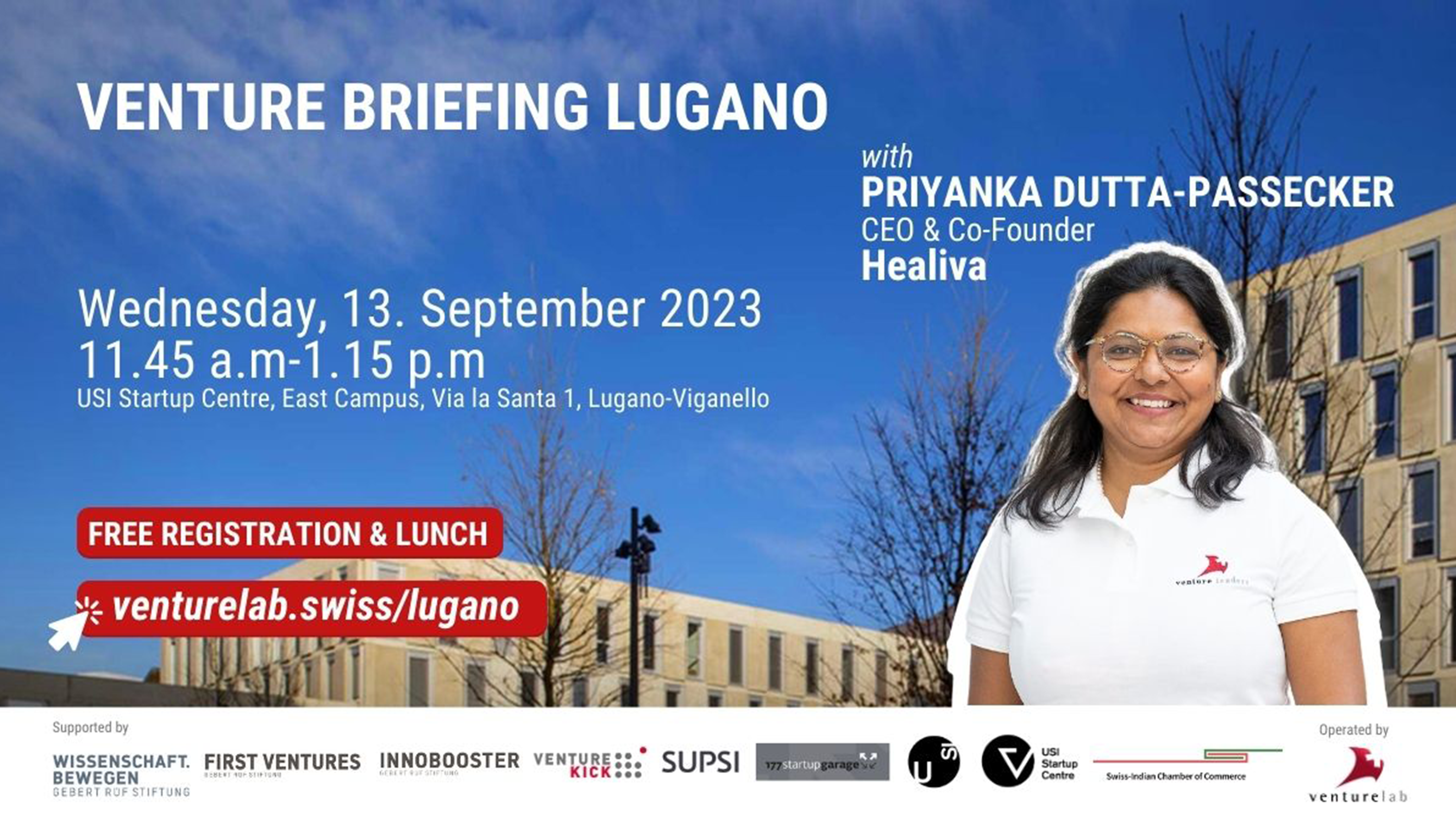 12:15 - Keynote speech by Priyanka Dutta-Passecker, Healiva (startup incubated at USI Startup Centre)