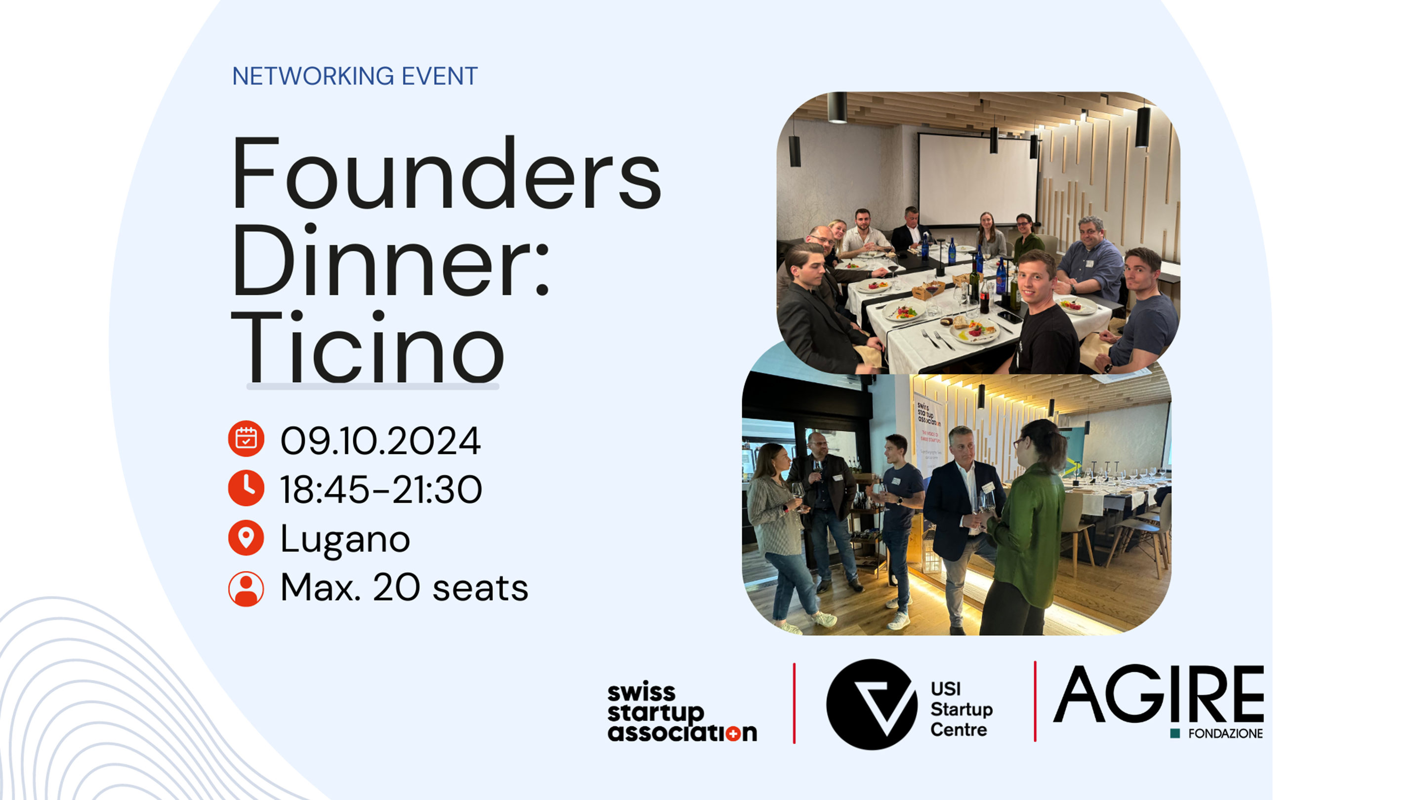Registration: https://swissstartupassociation.ch/current/events/founders-dinner-ticino/